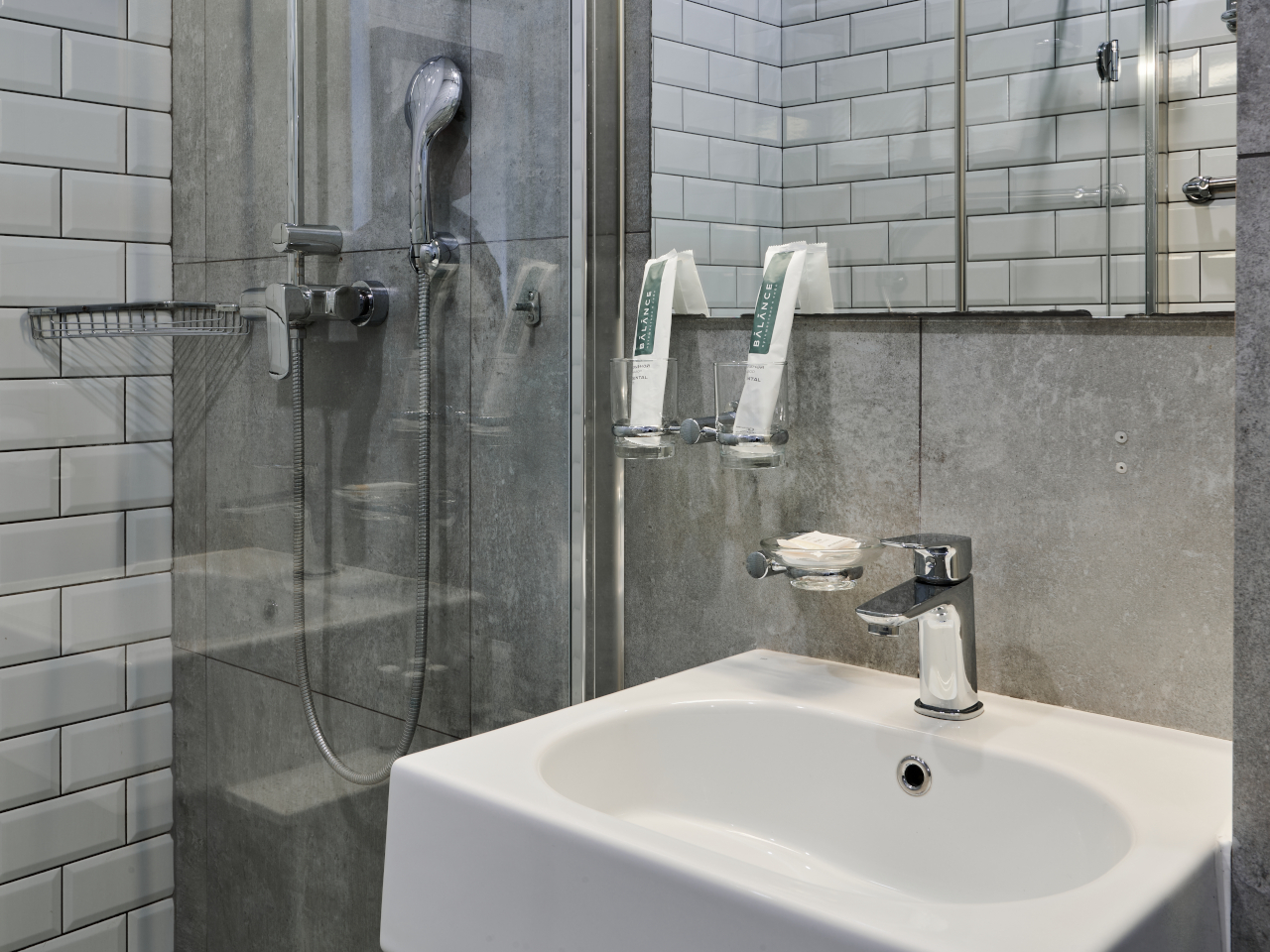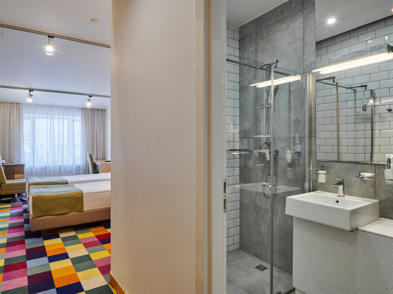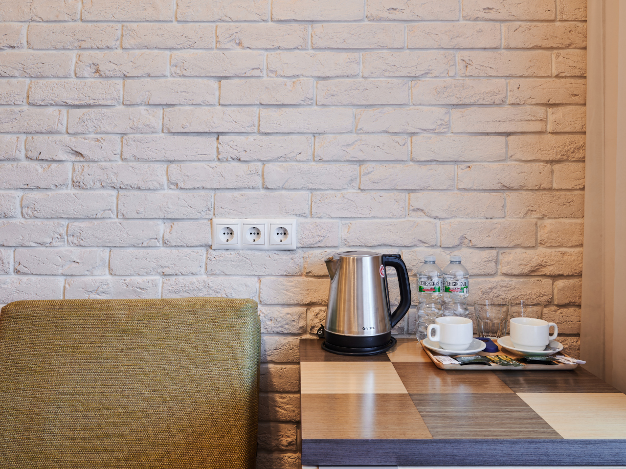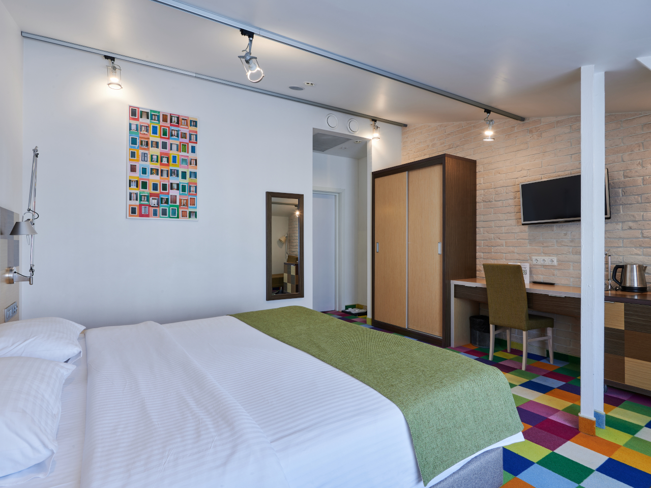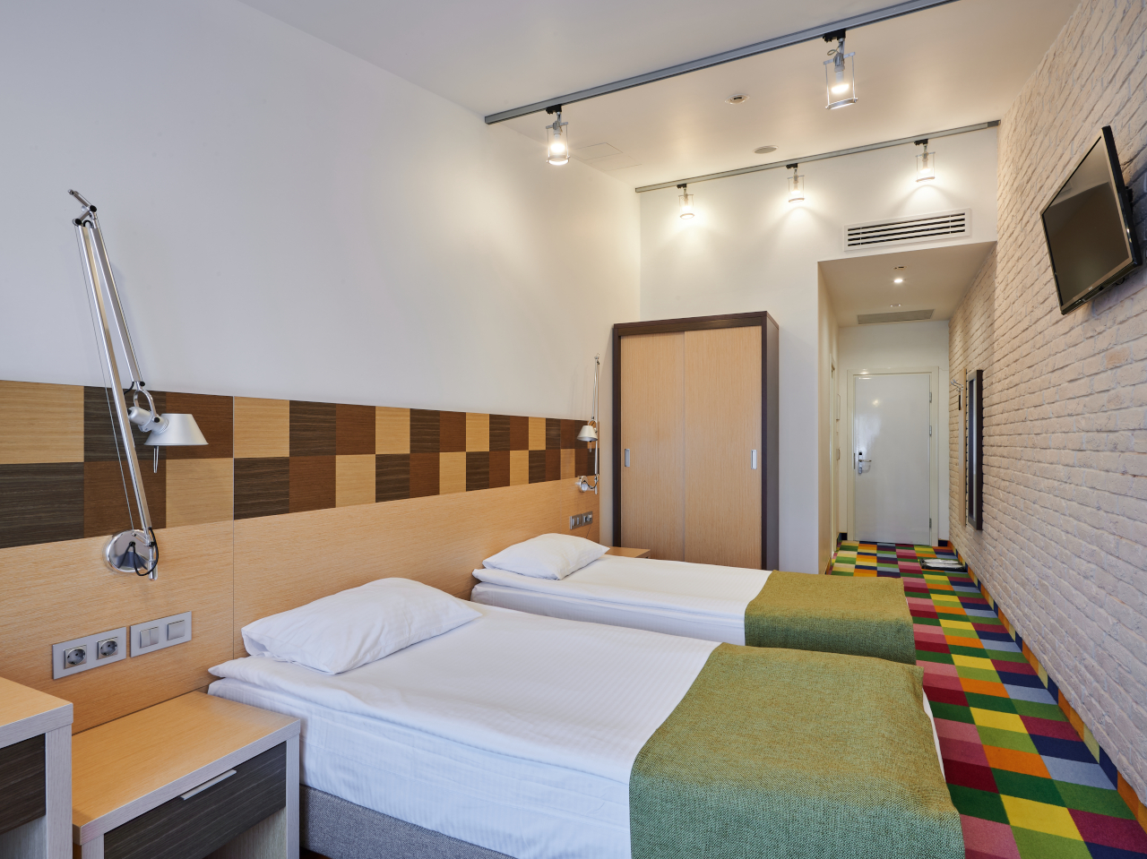 Классический номер площадью 24 кв. м. В номере одна двуспальная 180*200 или две односпальные кровати 90*200 ( по запросу гостя), 2 прикроватные тумбочки, кресло, рабочий стол, стул, шкаф, светильник, зеркало в полный рост, вешалка с крючками для верхней одежды и светлая ванная комната со стеклянной душевой кабиной, оснащенной гелем для душа, шампунем, лосьоном, кондиционером для волос, мылом и зубным набором. Номер удобен для размещения одного или двух человек. Номер оборудован феном, телевизором, кондиционером, сейфом, холодильником, телефоном, утюгом, гладильной доской, чайником с набором черного и зеленого чая, кофе и сахара, чашками, стаканами и ложками, бутилированной водой, тапочками и салфеткой для обуви. В каждом номере есть wi-fi. По запросу: беруши, расческа, шапочка для душа, косметический, бритвенный и швейный наборы.